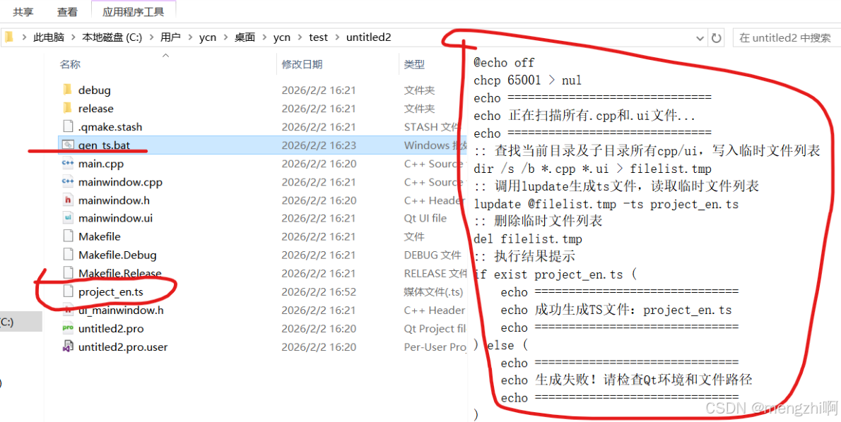 在项目pro目录,新建一个.txt,把这段代码考进去,然后重命名gen_ts.bat。双击可以自动生成.ts了