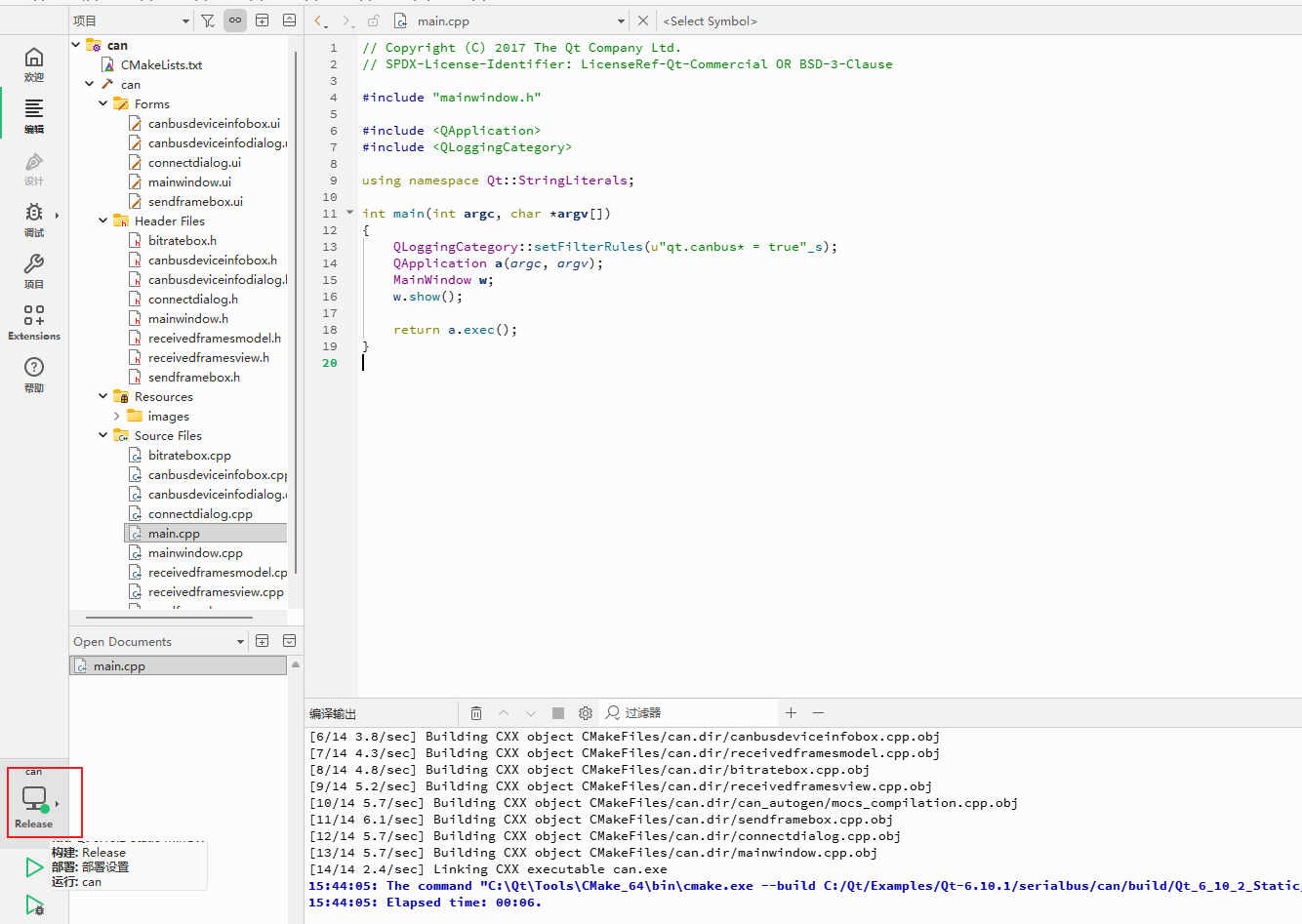 我选择了一个CAN相关的工程,代码目录如下:C:\Qt\Examples\Qt-6.10.1\serialbus\can