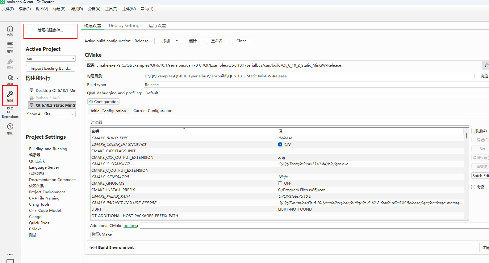 之后可以在C:\Qt\Examples\Qt-6.10.1\serialbus\can\build\Qt_6_10_2_Static_MinGW-Release目录中到找can.exe文件,差不多1个G大小。