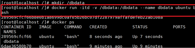 docker run -itd --volumes-from dbdata --name db1 ubuntu bash