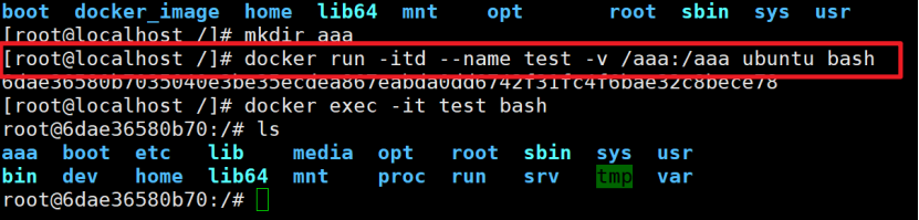 docker run -itd --name test -v /aaa:/aaa ubuntu bash