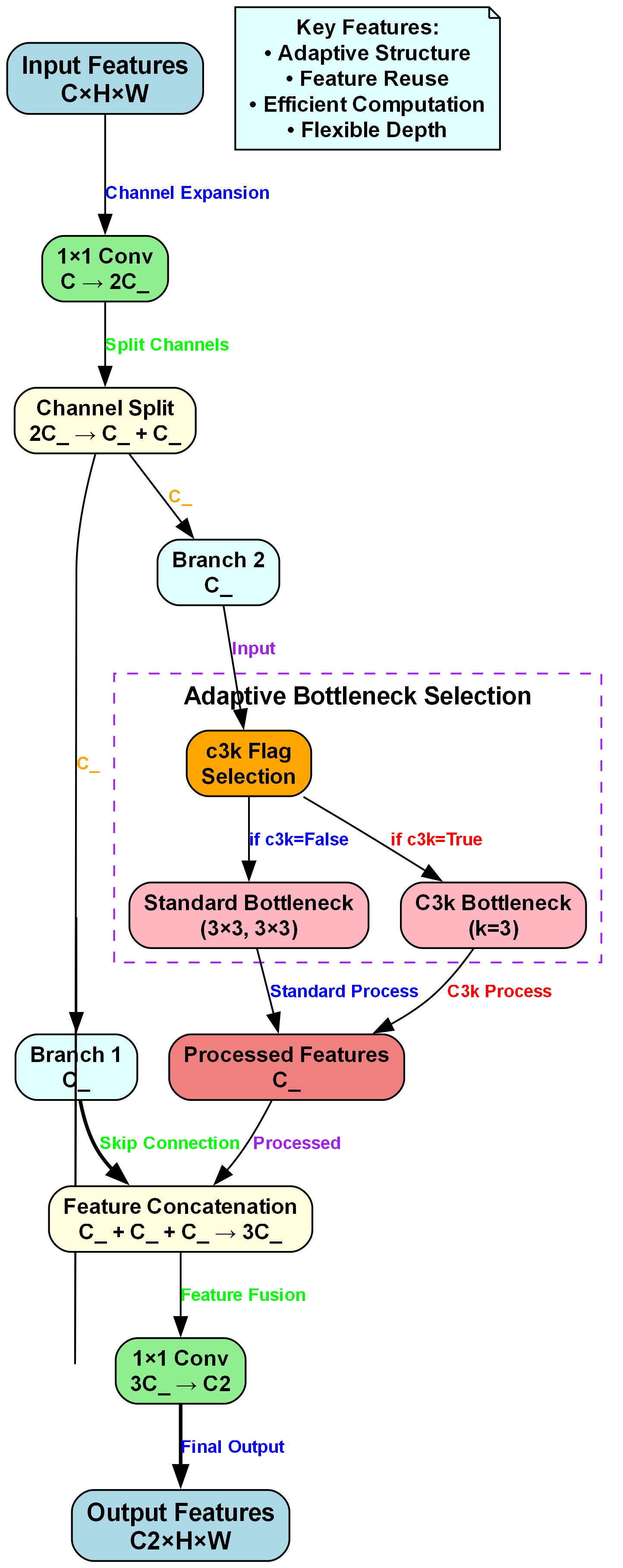 将MANet和FasterBlock结合,我们设计了MAN-FasterBlock模块,作为YOLO11的基本构建单元。该模块首先利用FasterBlock进行高效特征提取,然后通过MANet进行多尺度特征融合,最后通过残差连接保持梯度流动。