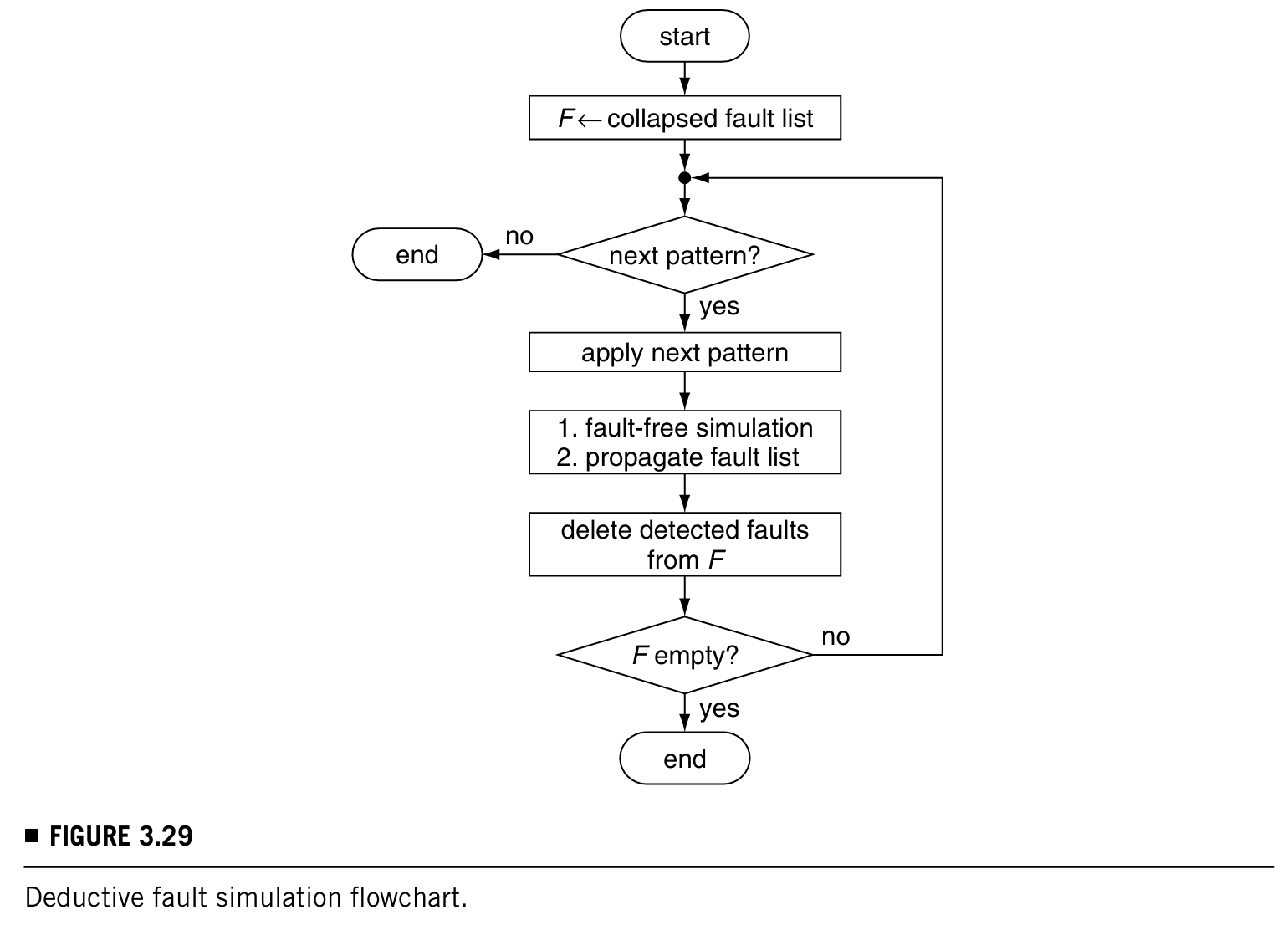下图是deductive fault simulation的流程图,和前面两个类似: