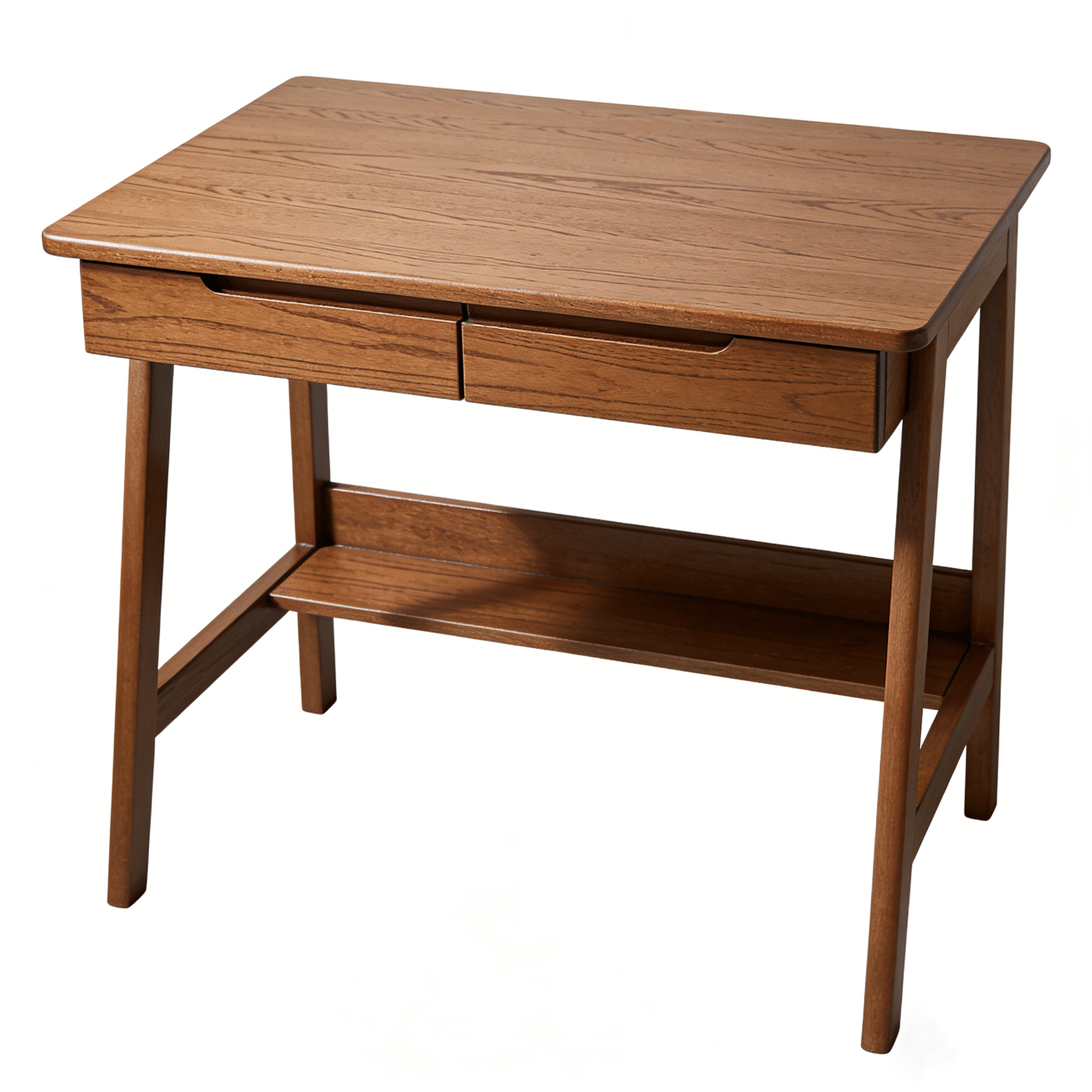 原图:实木书桌白底实拍图(全身全景,清晰对焦桌面纹理、桌腿版型,无多余杂物、无反光,手机或相机实拍均可),核心突出书桌的材质质感、尺寸比例,无需提前修图。