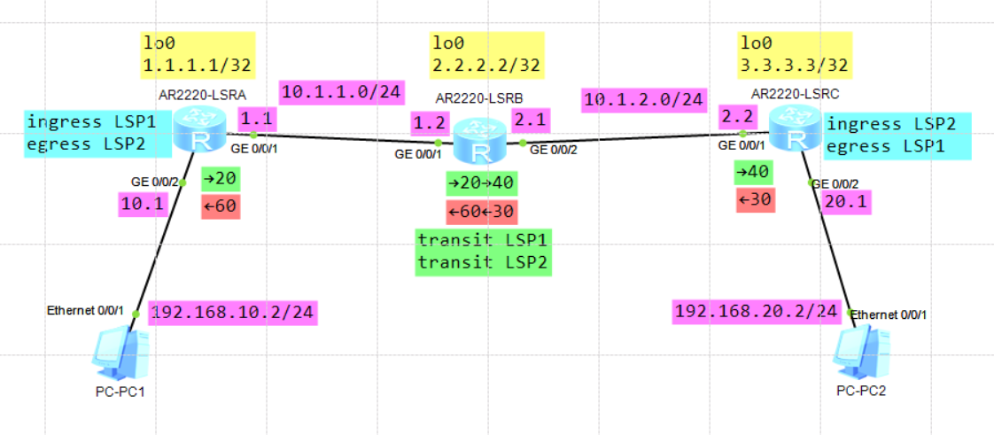 static-lsp egress配置不会生效(因无标签可匹配) - 本实验采用显式标签,由Egress节点弹出,逻辑更清晰