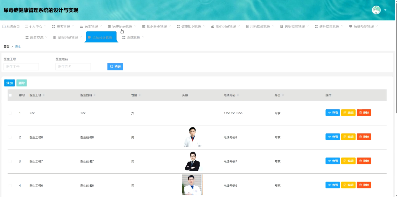 用户管理:对患者、医生信息进行查看、添加、编辑、删除,确保用户信息准确有效。