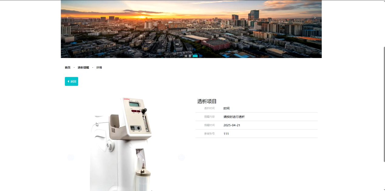 实现全周期精细化健康管理闭环:整合用药提醒、透析提醒、病史记录、透析结果管理、健康知识推送等功能,覆盖患者治疗、监测、教育、互动全环节,解决传统管理中各环节分散、衔接不畅的问题,有效提升患者治疗依从性,延缓病情进展。
