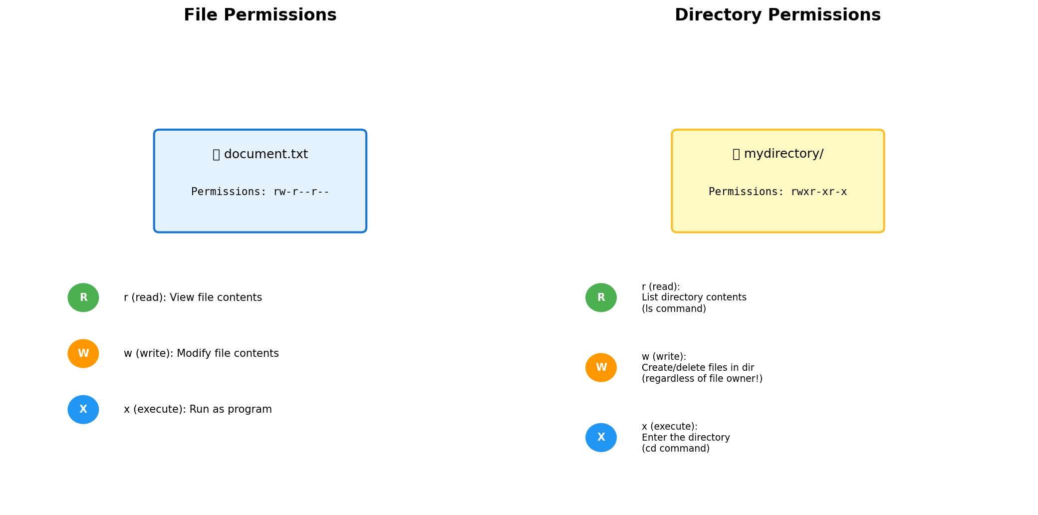 目录权限特殊性:r=列出内容,w=创建/删除文件,x=进入目录