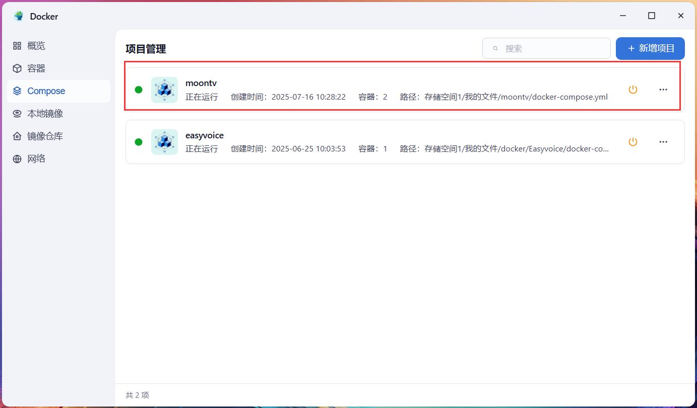 6,在 Docker 容器中可以看到部署好的 moontv 。