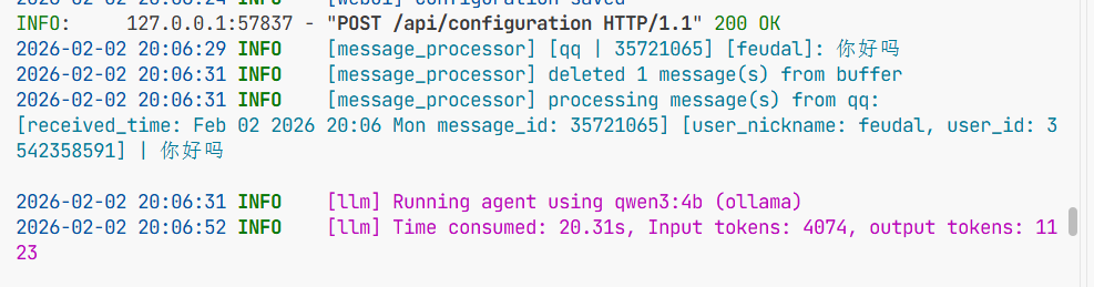 fetch_memory(session):展开会话的所有 chunk 为消息列表,用于构建 LLM 上下文 memory_manager.py:60-70 。update_memory(session, new_chunk):追加新 chunk,并根据max_memory_length滑动裁剪,然后保存文件 memory_manager.py:85-91 。write_memory(session, memory):直接覆写整个会话记忆(WebUI 使用) memory_manager.py:79-83 。