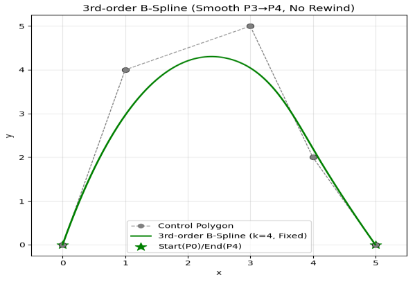 ax3.set_title('3rd-order B-Spline (Smooth P3→P4, No Rewind)')