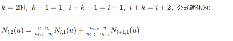 以一阶B样条曲线(工程叫法)为例,基函数阶次k=2