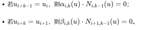 - 核心恒等式:m=n+k(节点向量长度m+1,k为当前基函数阶数);