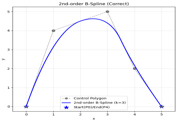 ax2.plot(curve_k3[:, 0], curve_k3[:, 1], color='blue', label='2nd-order B-Spline (k=3)', linewidth=2)