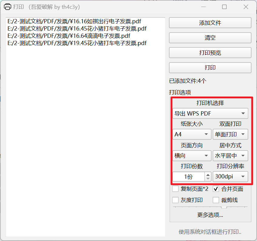 打印选项挺全:纸张大小、双面打、页面方向(横向/纵向都能选)、居中方式、分辨率都能调,还能预览------这预览和页面方向功能是之前那版没有的,打发票时对齐特别方便。