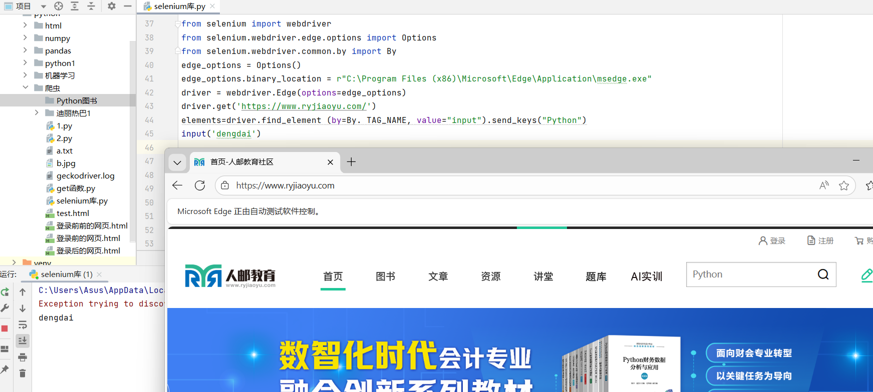 r;放 Python Scripts 目录后,cmd 输msedgedriver验证环境变量是否生效。 - 元素定位失败:加