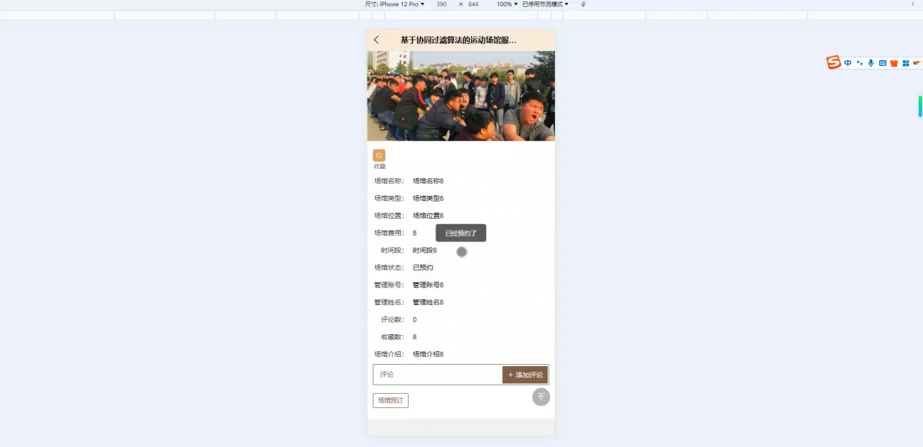 个性化推荐:基于自身历史预订、浏览行为,接收系统通过协同过滤算法推送的契合兴趣的场馆、赛事及活动。