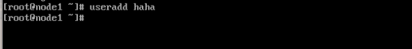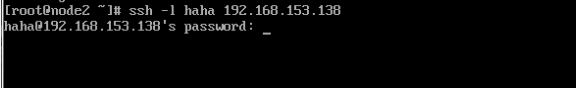 在两台主机上都执行exit退出登录,在node1上创建一个新用户haha,在node2上远程连接haha用户