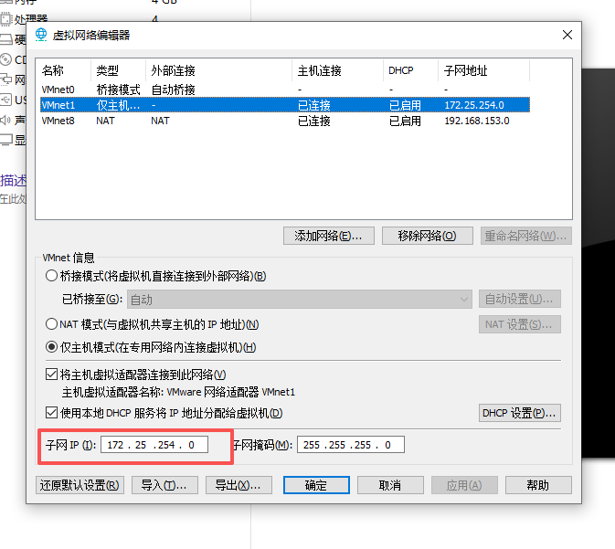 如果虚拟机的IP网段与win查看的不一致,可直接修改虚拟机的IP网段