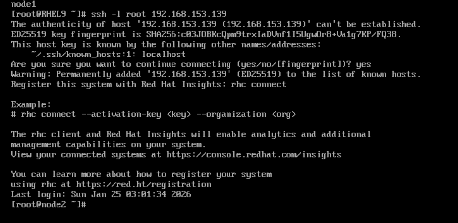 远程连接成功后,但每次远程连接都需要输入yes,所以开启母盘RHEL9.6_db,远程连接一下,设置关闭响应