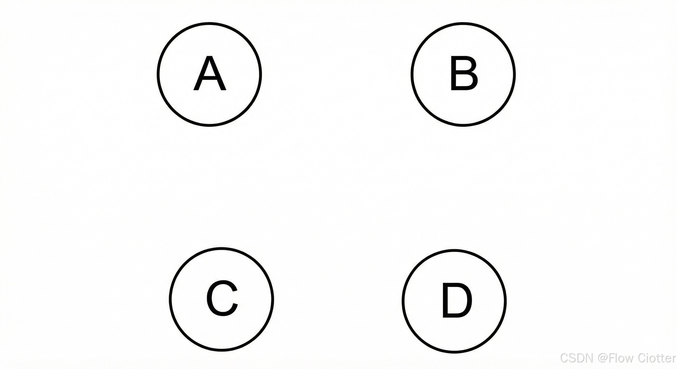 首先,我们将现实世界中的个体或实体抽象为图中的"顶点"(或节点)。在下图中,我们有四个独立的顶点 A、B、C 和 D。这可以代表四个城市、四个人、或者四个网络服务器。