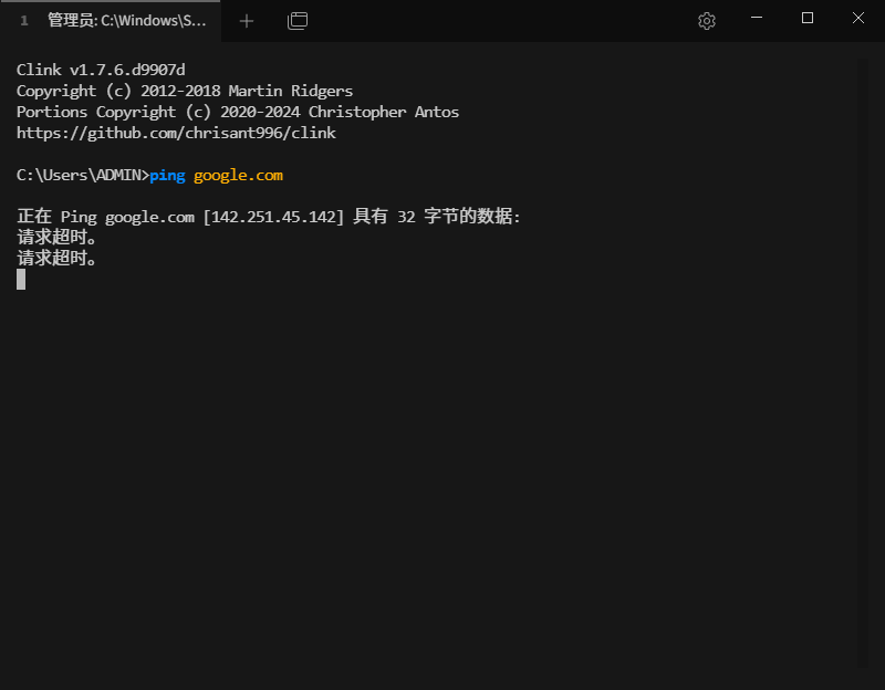 **确认开启使用了C小猫,如何验证CMD终端中成功DL?**我之前使用ping google.com来测试,但我发现一直无法访问。