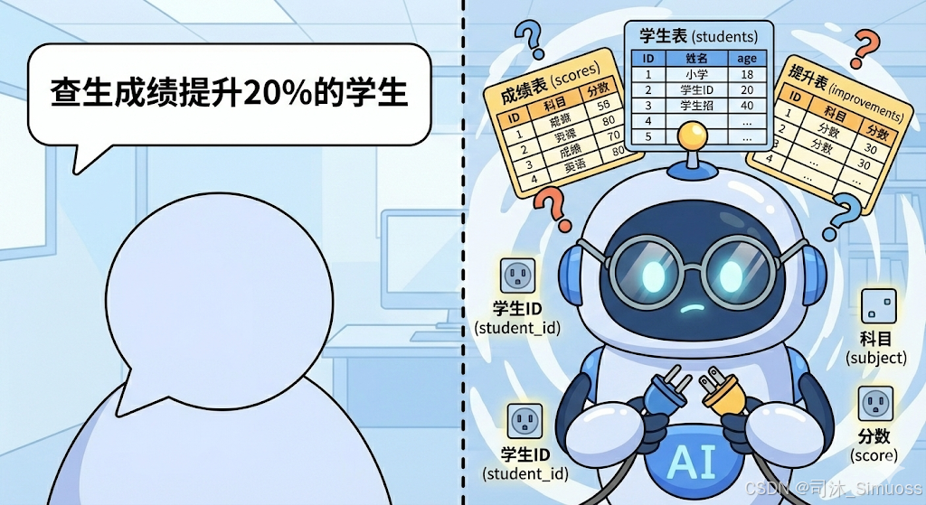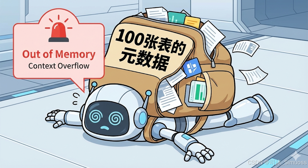 但是,刚出生的AI就像个实习生,它对你的数据库一无所知。它不知道表名,不知道字段意图,更不知道数据规模。你直接问它,它只能凭直觉写出来一堆飘红的查询语句。