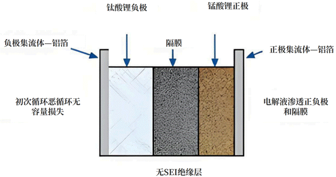 钛酸锂电池的负极材料为钛酸锂(Li₄Ti₅O₁₂),正极材料可采用三元或磷酸铁锂体系,电解液为有机液态电解质。纳米钛酸锂电池的结构如图9-5所示,其核心优势在于钛酸锂的尖晶石结构具有极高的稳定性。