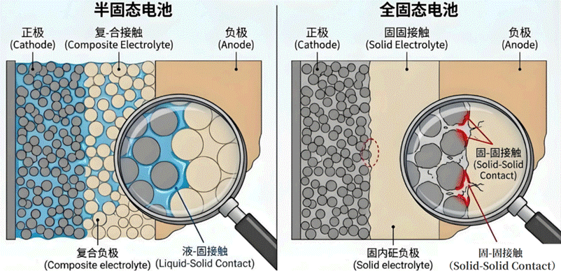半固态锂电池是液态锂电池向全固态锂电池的过渡方案,其核心改进为采用固态电解质替代部分液态电解质,或采用凝胶电解质、聚合物电解质。正极材料可沿用三元或磷酸铁锂体系,负极多为石墨或硅碳复合负极。