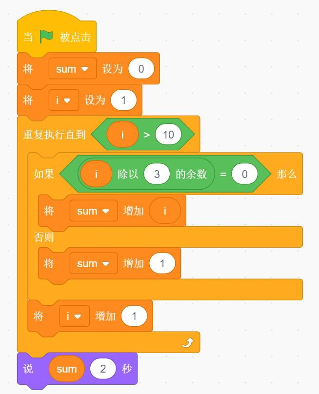 3、默认小猫角色,执行下列程序,小猫说出的内容是?( )