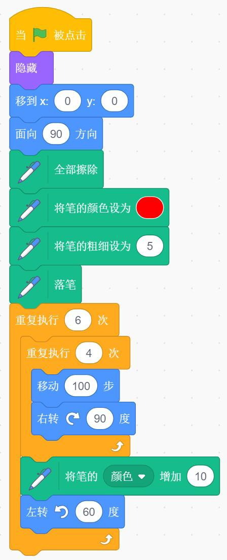 6、默认小猫角色,执行下列哪个程序,能够绘制如下图所示的图形?( )