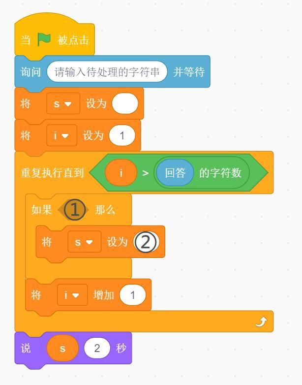 10、默认小猫角色,执行下列程序,输入字符串 G@E@@SP@,小猫说出的内容为 GESP,