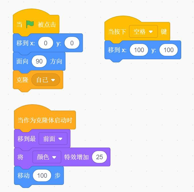 7、默认小猫角色,执行下列程序,按下空格键后,舞台中看到的是哪个选项?( )