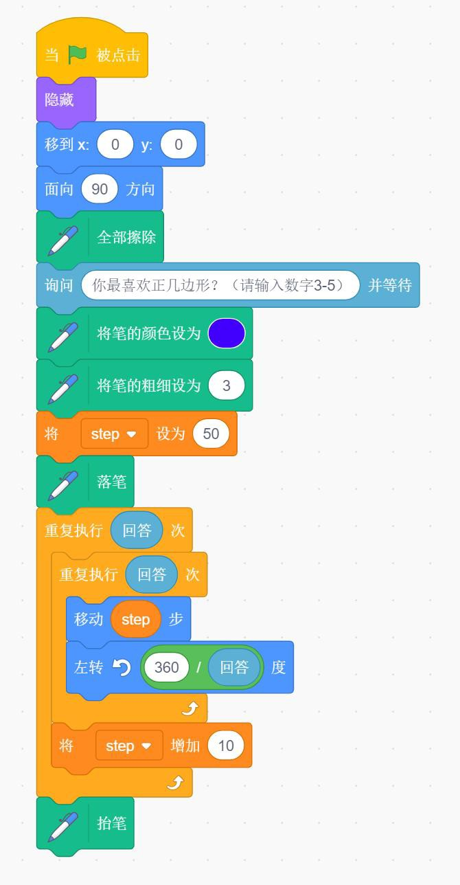 5、默认小猫角色,执行下列程序,输入数字 5,绘制的图形是?( )