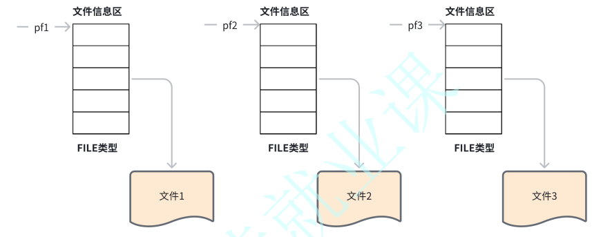 我们定义pf指向FILE类型数据的指针变量,可以使pf指向某个文件的文件信息区,通过该文件信息区中的信息就能够访问该文件,也就是说,通过文件指针变量能够间接找到与它相关的文件。