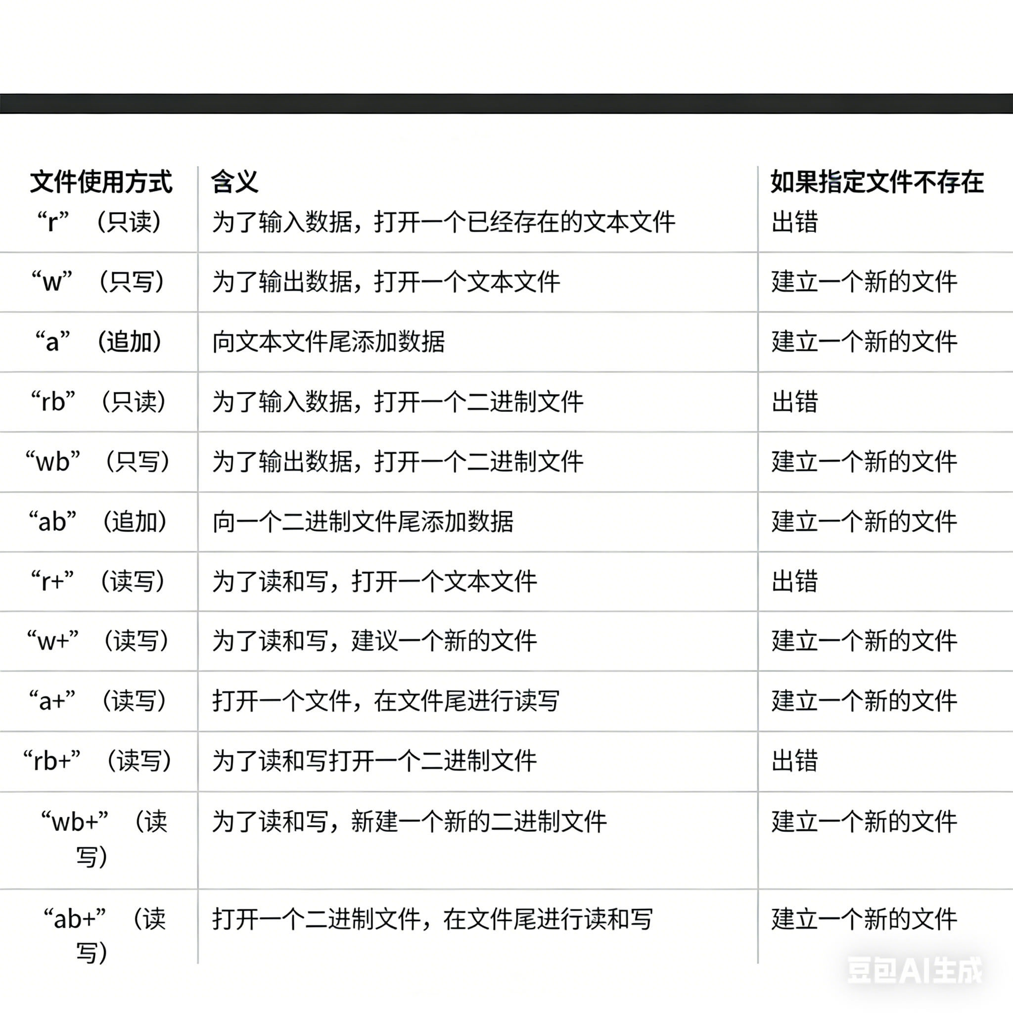 mode表示文件打开的模式,下面都是文件的打开模式: