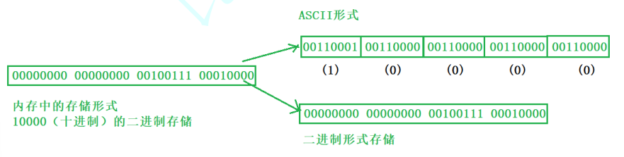 字符一律以ASCII形式存储,数值型既可以用ASCII形式存储,也可以使用二进制形式存储