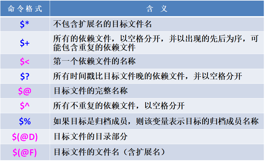 makefile中有许多预定义变量,这些变量具有特殊的含义,可在 makefile 中直接使用。