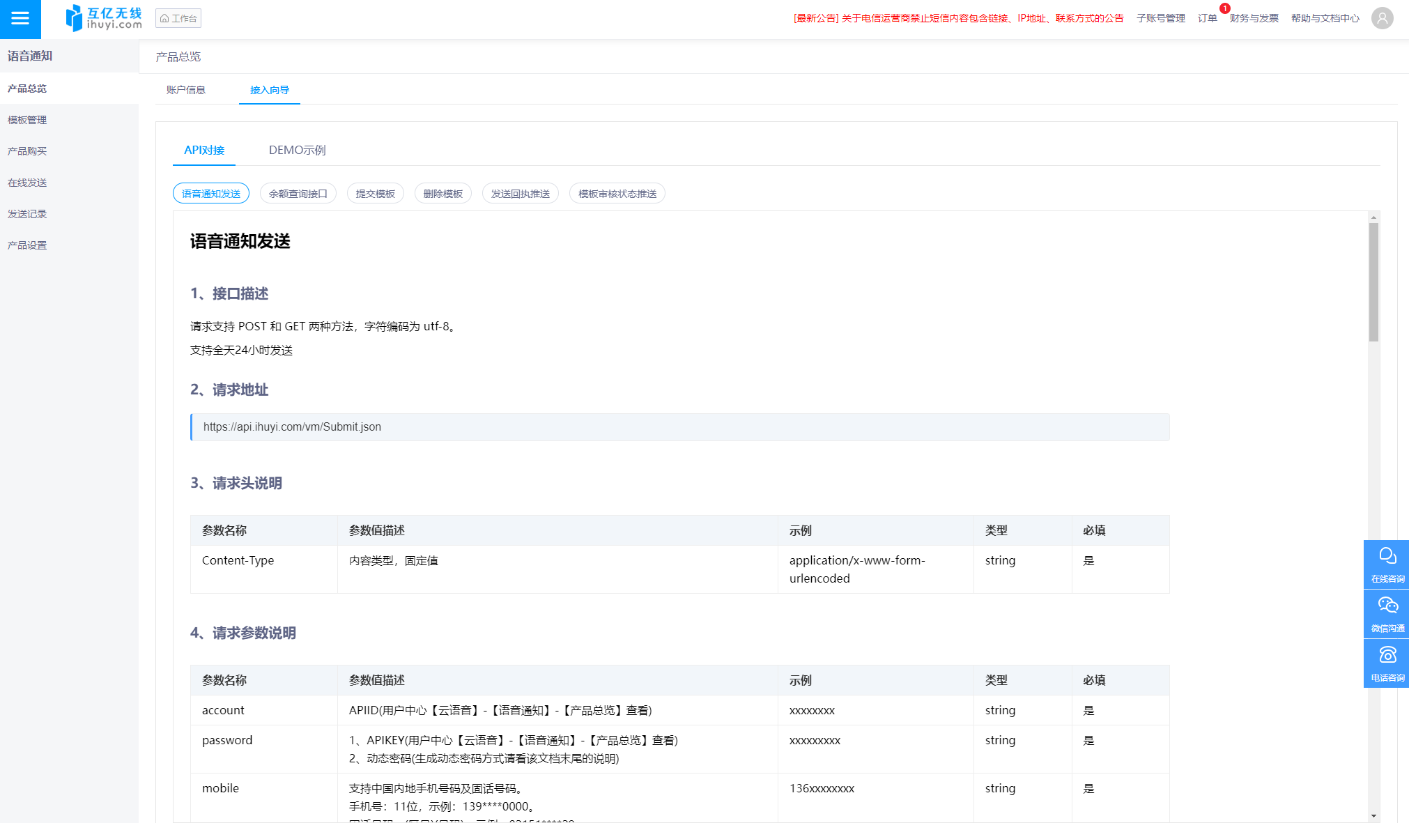 无论开发哪种语音类型,接口调用前均需完成三项基础准备,行业内如互亿无线的语音消息接口,其开发前的准备工作也遵循此标准化流程,缺一不可: