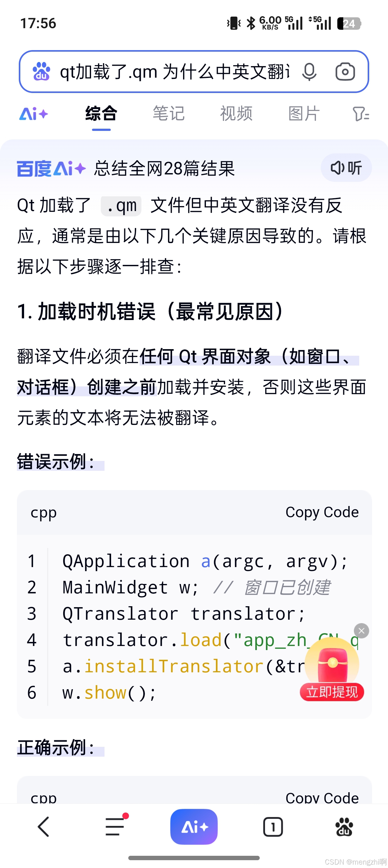 qt加载了.qm却没有反应。因为加载时间太晚了