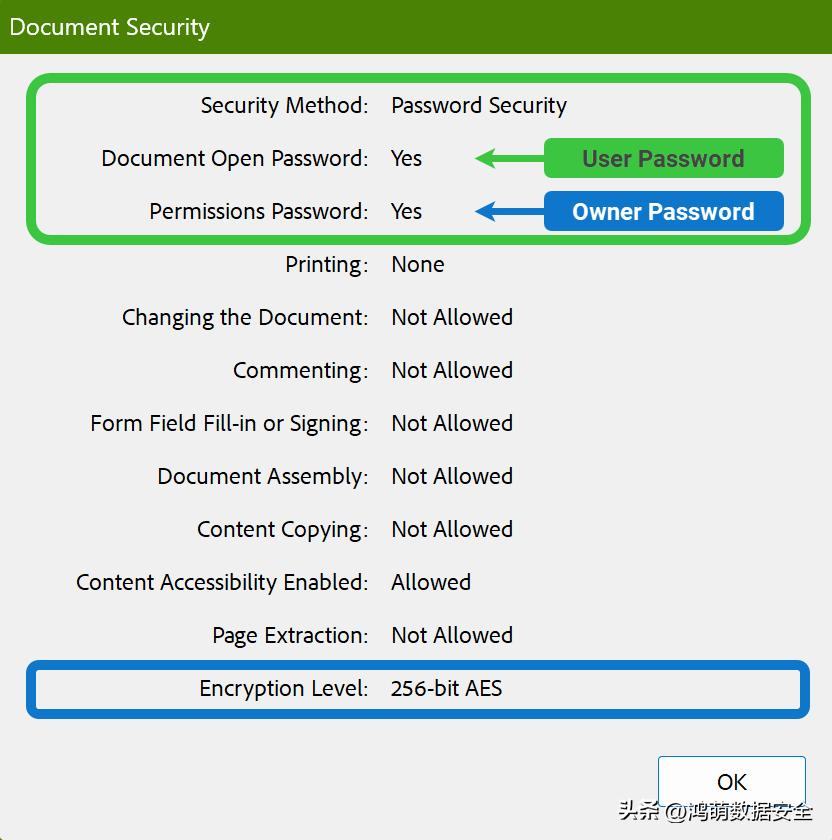 提示:在某些情况下,用户密码与所有者密码完全相同。若已知所有者密码,则无需用户密码即可访问文档或修改其权限。
