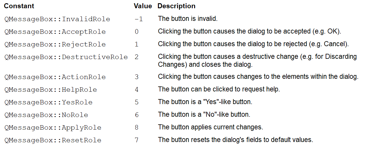 QMessageBox::StandardButton defaultButton = QMessageBox::NoButton // 默认聚焦的按钮
