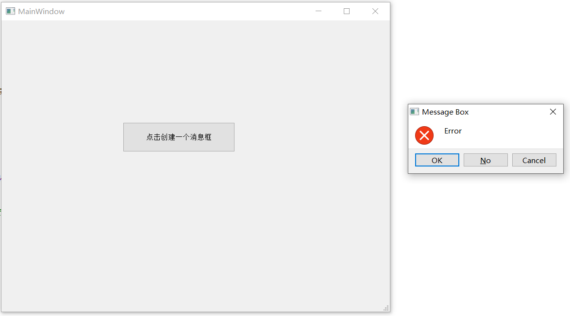 首先是创建方式,这个其实和QDialog是一样的,并且它同样也是继承QWidget的,因此也可以使用QWidget相关的属性和函数来设置标题等,setText是QMessageBox自带的,用来设置消息的