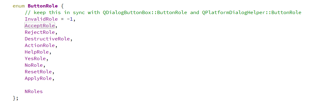 其中的addButton的第二个参数,其实是设置我们的按钮所代表的属性,AcceptRole就代表接受,Ok
