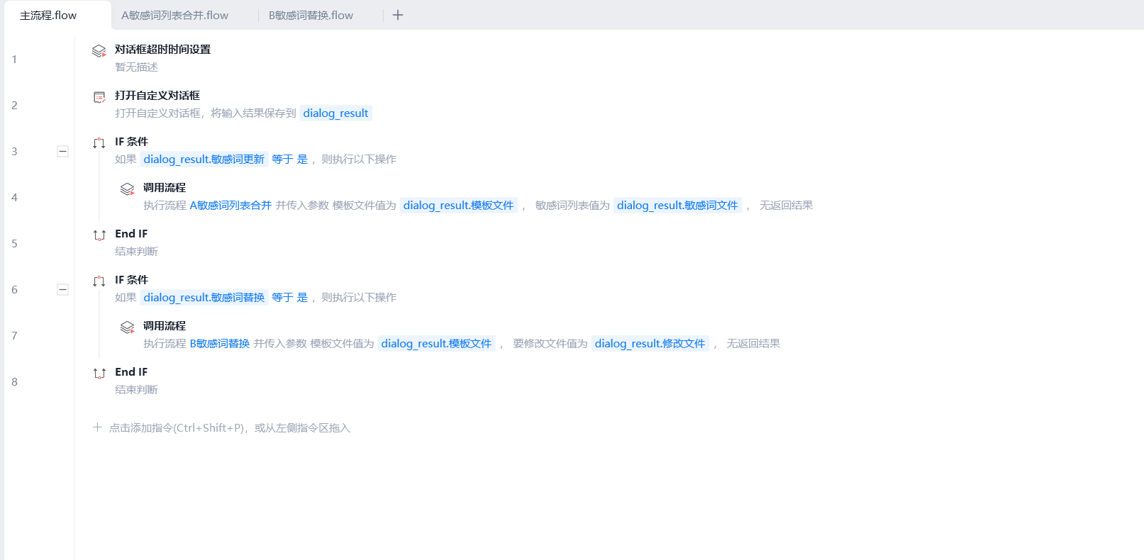 - 循环处理每个文档 :使用 "循环列表" 组件,遍历文件夹中的每个文档,依次对其进行敏感词替换。