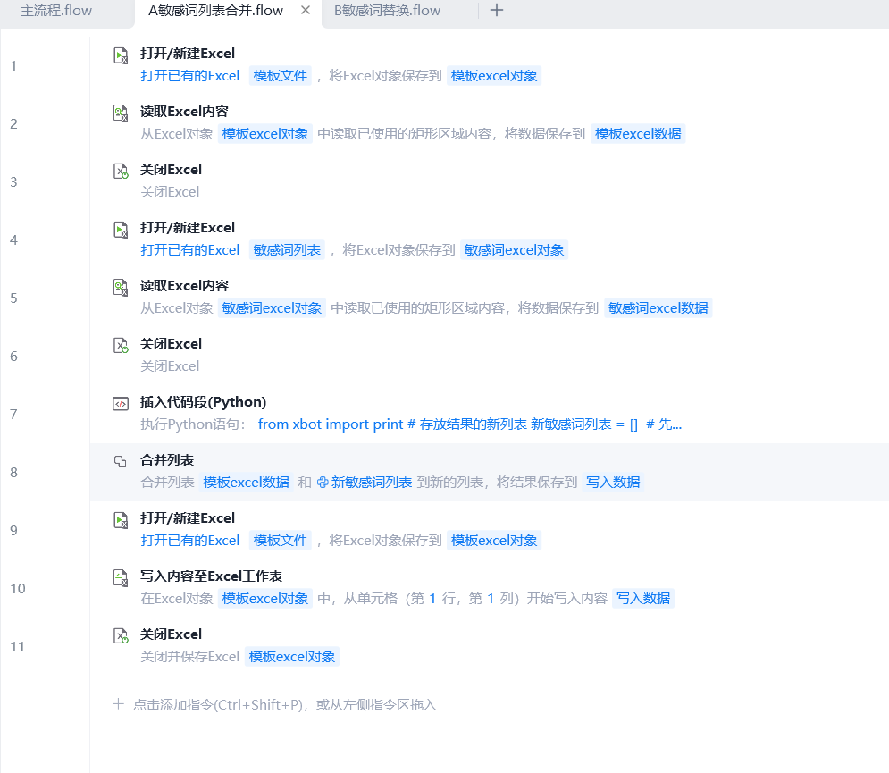 - 创作者提前准备敏感词表格,交给影刀 RPA 处理。