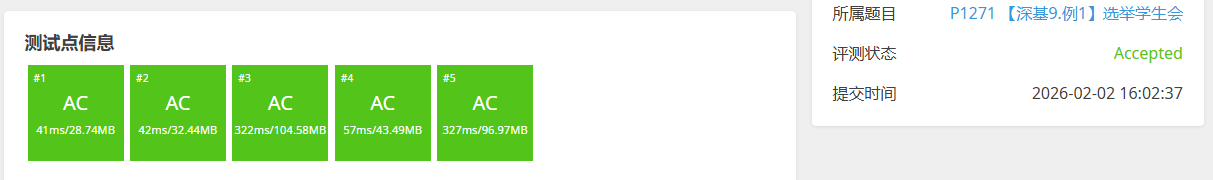 提交测评后可以看到虽然相比方案三耗时相差无几,但是明显更加节省空间