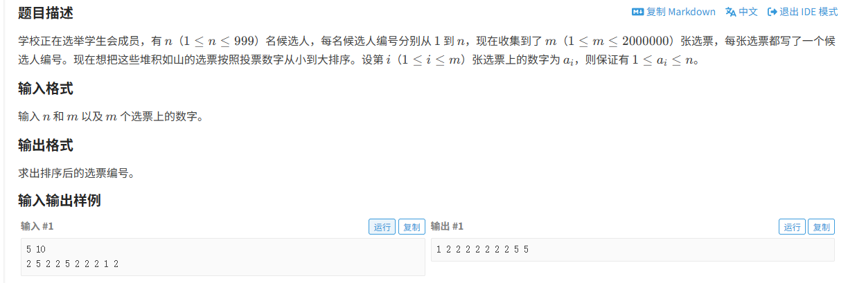 该题目为洛谷的P1271 【深基9.例1】选举学生会,是一道典型的排序加大数据量读写的题目,题目看似不难,但使用java语言进行做题时,如若使用传统