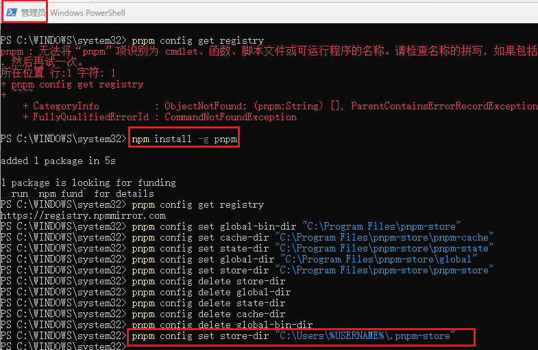 ③ pnpm config set store-dir "C:\Users\(你的电脑用户名)\.pnpm-store"