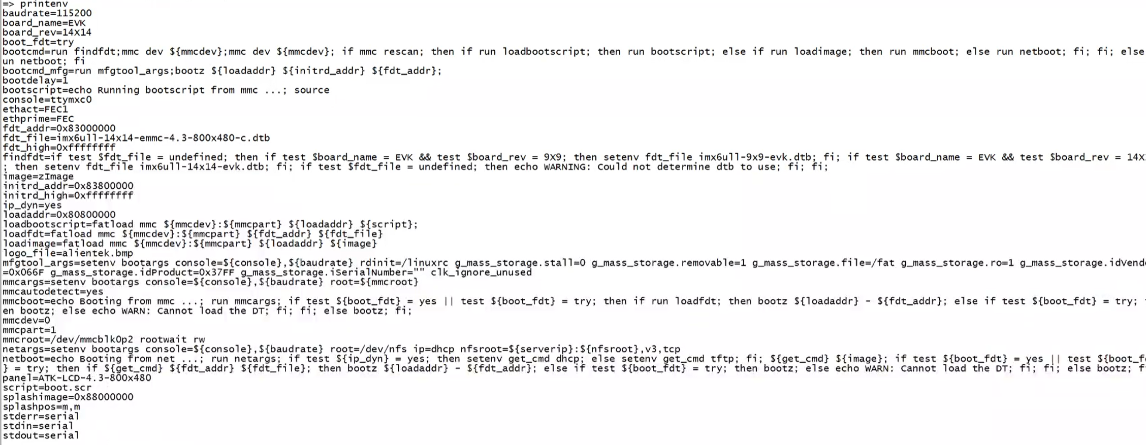 **console=ttymxc0,115200:**指定内核控制台输出设备为 i.MX6ULL 的 ttymxc0 串口,波特率为 115200,需与终端工具设置一致。